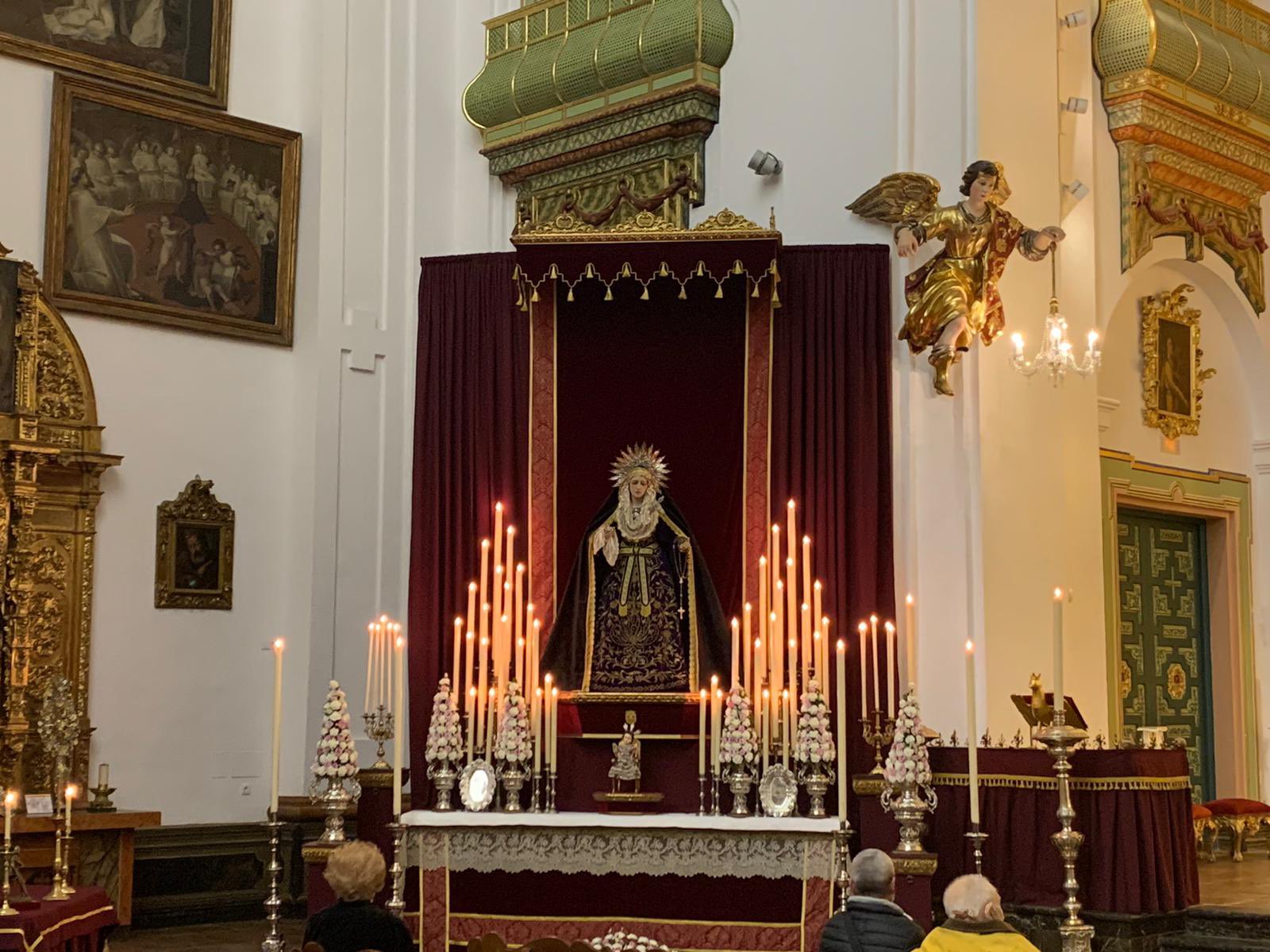 Besamanos de María Santísima de la Quinta Angustia en horario de 11:00 a 14:00 horas y de 17:00 a 20:30 horas en la Iglesia de la Merced.