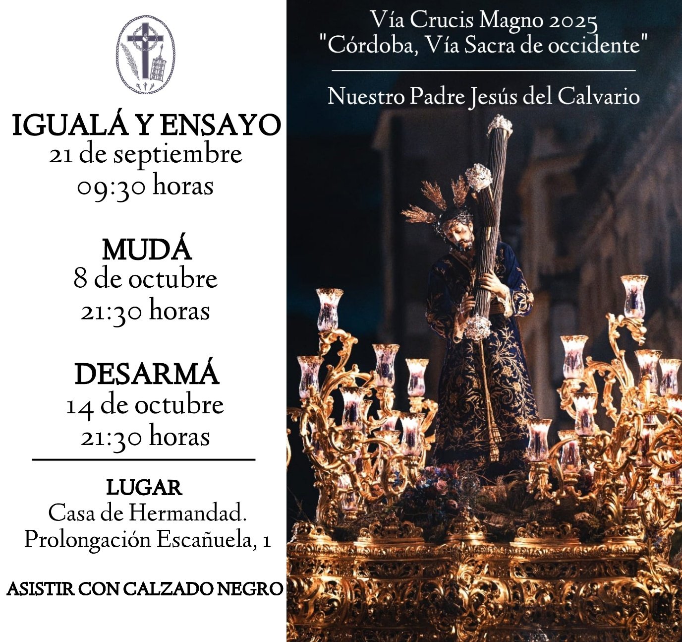 Ensayo de costaleros de María Santísima en su Soledad de cara al Rosario Vespertino Extraordinario con motivo del L aniversario de la fundación de la Hermandad, a las 21:00 horas en el Patio del Colegio de los Franciscanos.