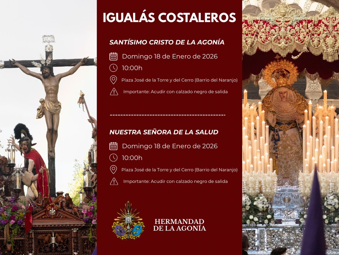 Igualá de costaleros del Santísimo Cristo de la Caridad, a las 21:15 horas en la Parroquia de San Francisco y San Eulogio.