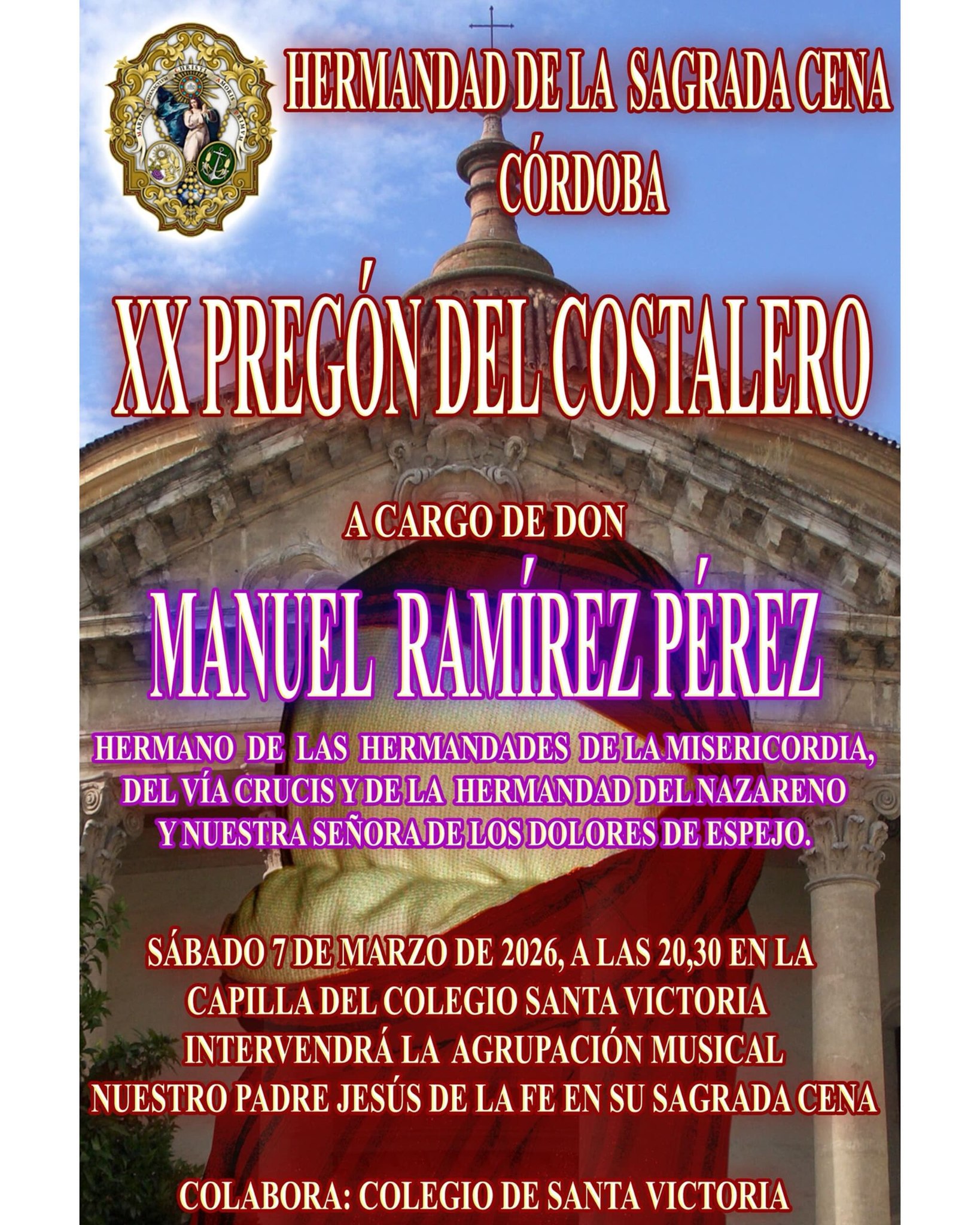 Parroquia de San Antonio de Pádua Av. Agrupación Córdoba, 11, 14007 Córdoba, Córdoba, EspañaMeditación ante Nuestro Padre Jesús Humilde en su Coronación de Espinas a cargo de D. Salvador Fuentes Lopera, Presidente de la Diputación Provincial de Córdoba, a las 18:00 horas en la Parroquia de San Antonio de Pádua.