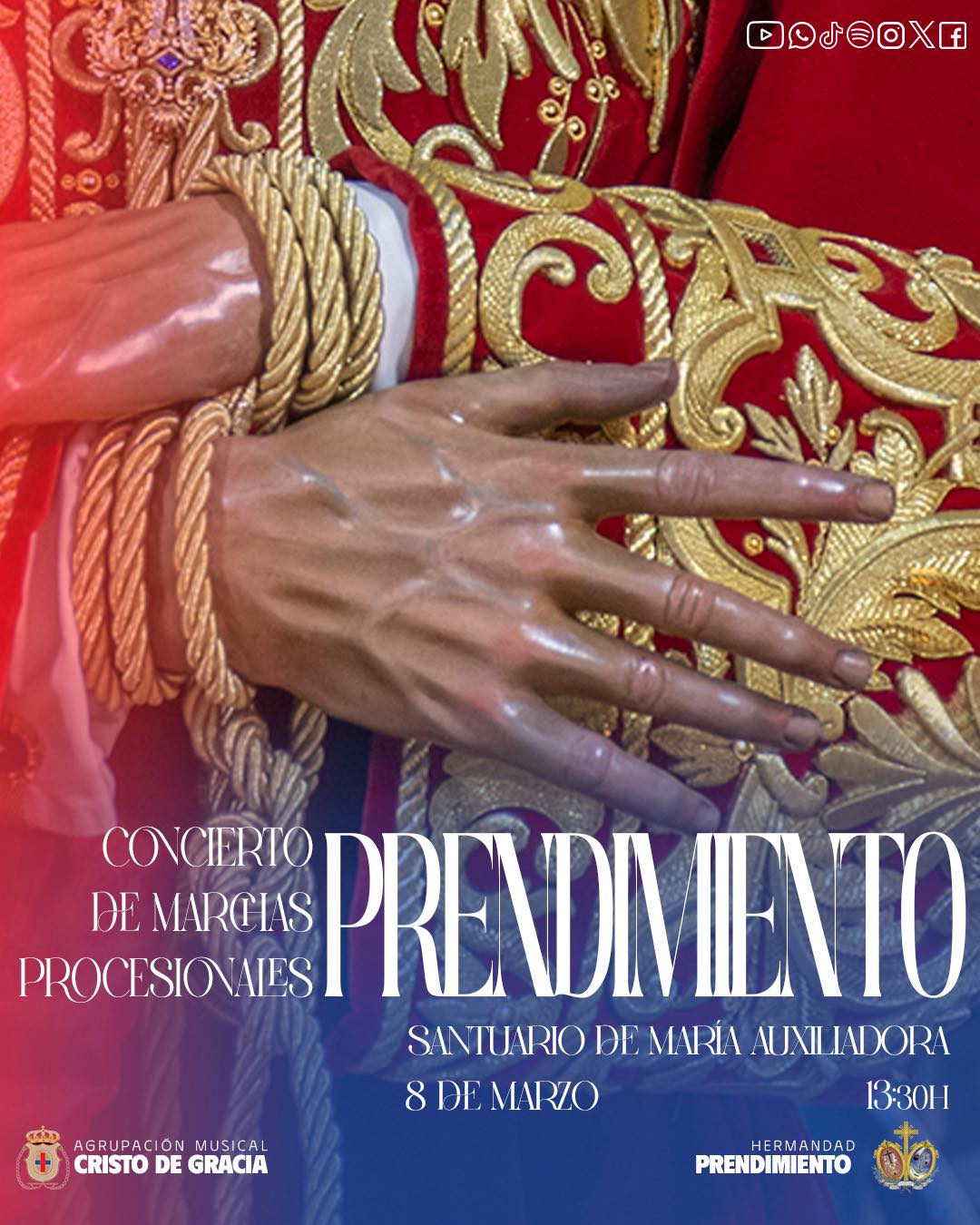 Concierto de marchas procesionales a cargo de la Agrupación Musical «Cristo de Gracia» de Córdoba, a las 13:30 horas en el Santuario de María Auxiliadora.