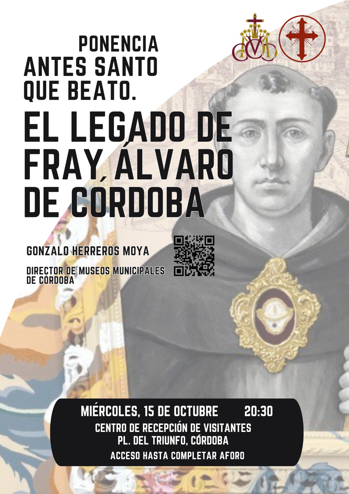 Conferencia «Antes Santo que Beato. El legado de Fray Álvaro de Córdoba» a cargo de D. Gonzalo Herrero a las 20:30 horas en el Salón de Actos del Centro de Recepción de Visitantes de Córdoba ubicado en la Plaza del Triunfo.