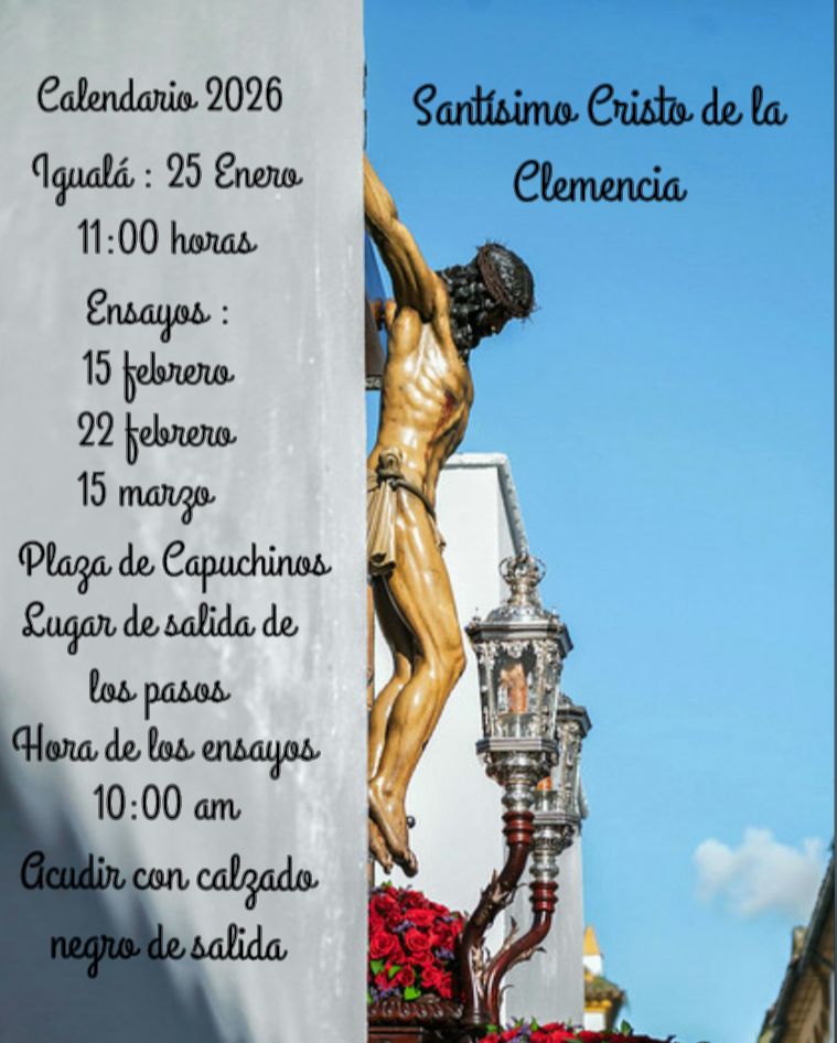 Patio Casa Hermandad de los Dolores Plaza de Caluchinos, 6, Córdoba, Córdoba, EspañaIgualá de costaleros del Santísimo Cristo de la Clemencia, a las 11:00 horas en el local de salida de la Hermandad en la Plaza de Capuchinos.