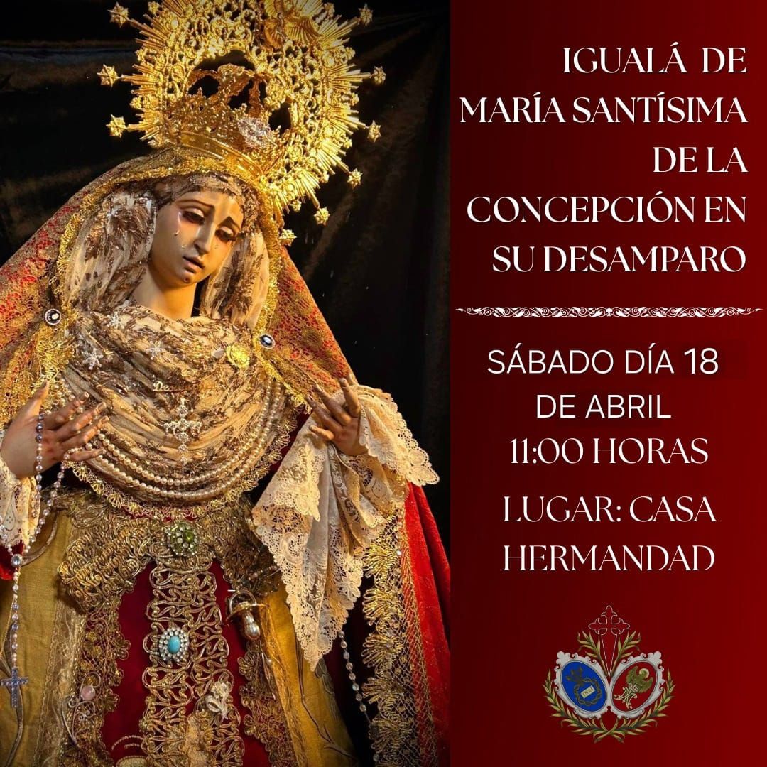 Igualá de costaleros de María Santísima de la Concepción en su Desamparo, a las 11:00 horas en la Casa de Hermandad.