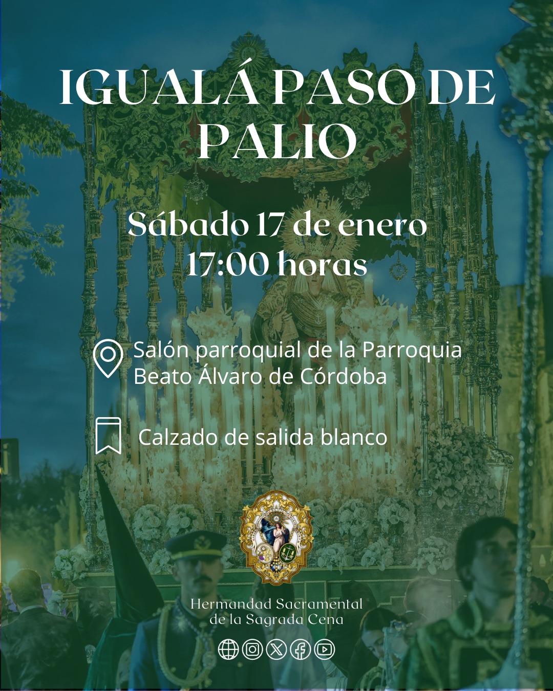 Igualá de costaleros de María Santísima de la Esperanza del Valle, a las 17:00 horas en los Salones Parroquiales del Beato Álvaro de Córdoba.