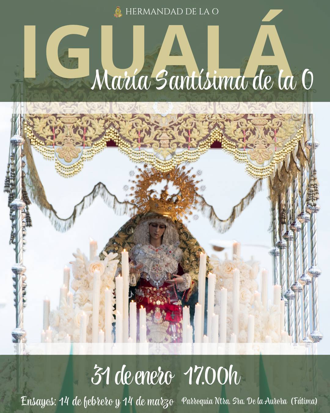 Igualá de costaleros de María Santísima de la O, a las 17:00 horas en la Parroquia de Nuestra Señora de la Aurora.