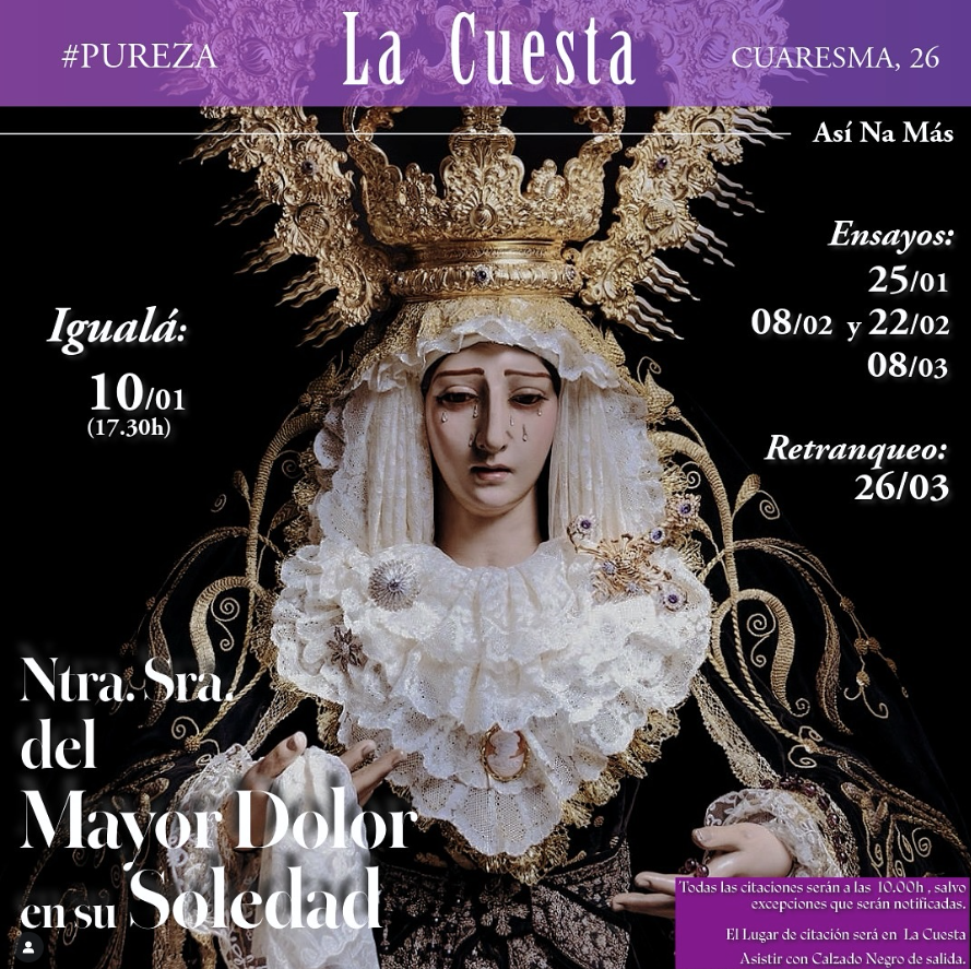 Igualá de costaleros de Nuestra Señora del Mayor Dolor en su Soledad, a las 17:30 horas en la Cuesta de San Cayetano.