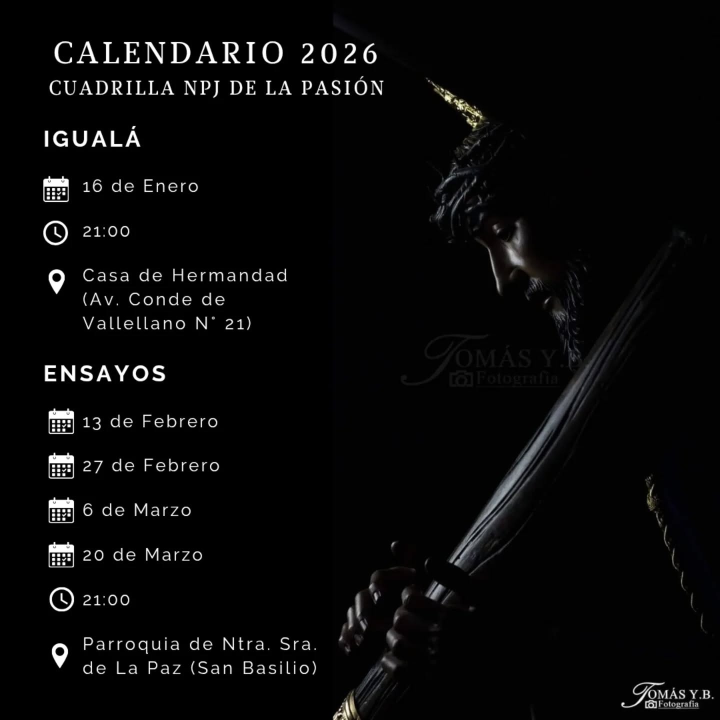 Igualá de costaleros de Nuestro Padre Jesús de Pasión, a las 21:00 horas en la Casa de Hdad. sita en la Avenida de Vallellano, 21.