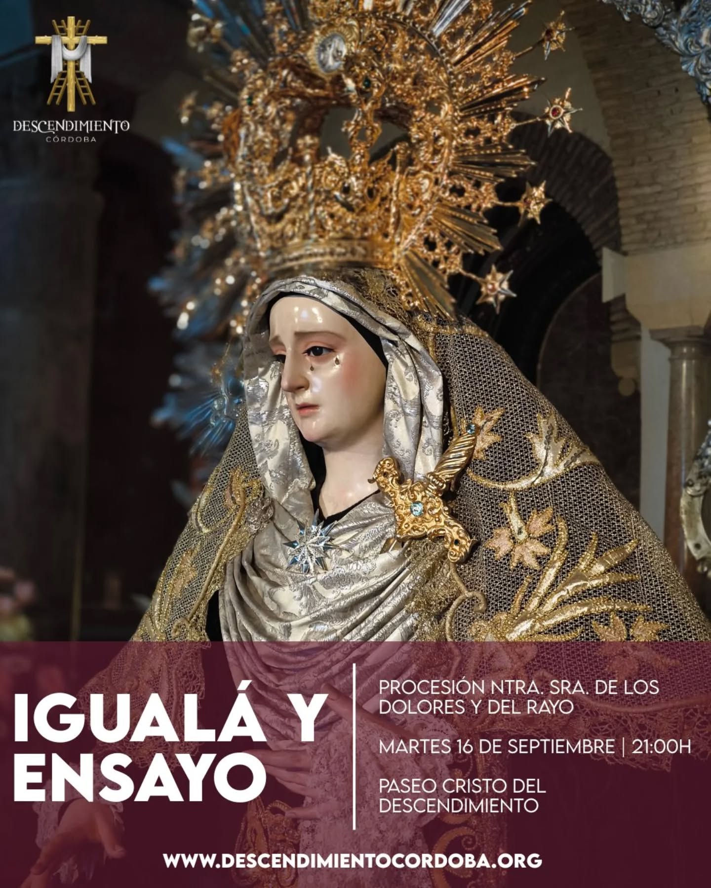 Igualá y ensayo de costaleros de Nuestra Señora de los Dolores y del Rayo, a las 21:00 horas en el Paseo Cristo del Descendimiento.