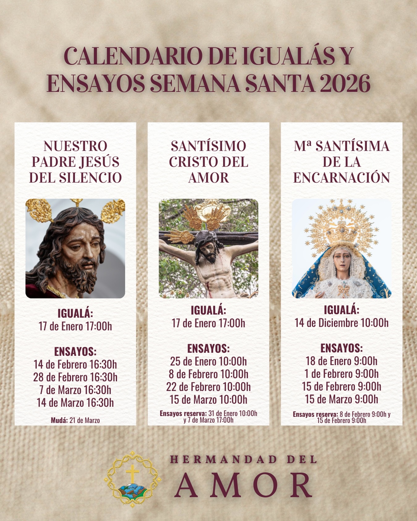 Parroquia de Jesús Divino Obrero C. Beato Henares, 1, Córdoba, EspañaIgualá de costaleros de Nuestro Padre Jesús del Silencio y del Santísimo Cristo del Amor, a las 17:00 horas en la Parroquia de Jesús Divino Obrero.