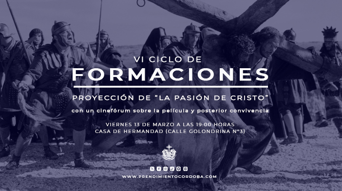 Proyección de la película «La Pasión de Cristo» con un cinefórum sobre la película y posterior convivencia, a las 19:00 horas en la Casa de Hermandad sita en la C/ Golondrina, 3.