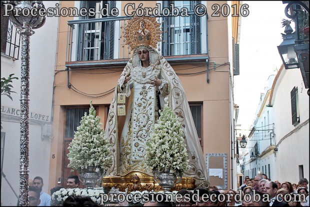 IDA: Salida (08:30 horas), Avenida Agrupación Córdoba, Doctor Manuel Villegas, Escritor Cristóbal de Mesa, Vázquez Venegas, San Acisclo, Sagunto, Ronda del Marrubial, Plaza Cristo de Gracia, María Auxiliadora, Plaza de San Lorenzo, Santa María de Gracia, Realejo, Plaza de San Andrés, Fernán Pérez de Oliva, Gutiérrez de los Ríos, Plaza de la Almagra, Plaza del Socorro, Plaza de la Corredera, Sánchez Peña, Maese Luis, Huerto San Pedro el Real, Compás de San Francisco, San Fernando, Portillo, Cabezas, Rey Heredia, Portería de Santa Clara, Plaza de Abades, Martínez Rücker, Plaza de Santa Catalina, Puerta de Santa Catalina, Patio de los Naranjos y Entrada en la Santa Iglesia Catedral.